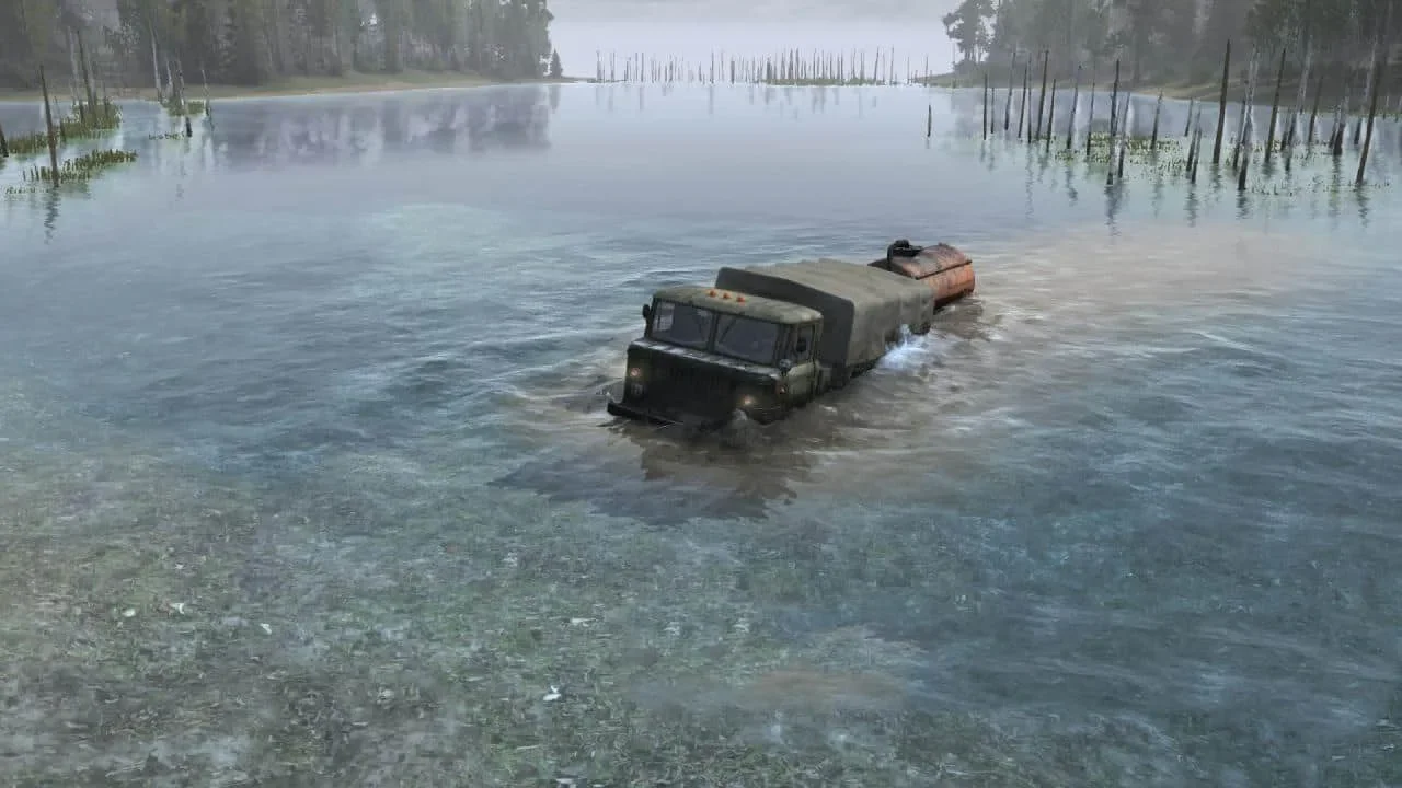 Водные препятствия — отдельный жанр авторских карт для MudRunner. Болотистые участки и речные переправы требуют совсем другого подхода, чем горные дороги: важны не мощность двигателя и блокировка дифференциала, а выбор траектории и оценка глубины. Карты из этого раздела — наглядная демонстрация того, как MudRunner предлагает реалистичную физику взаимодействия техники с водой и грунтом.