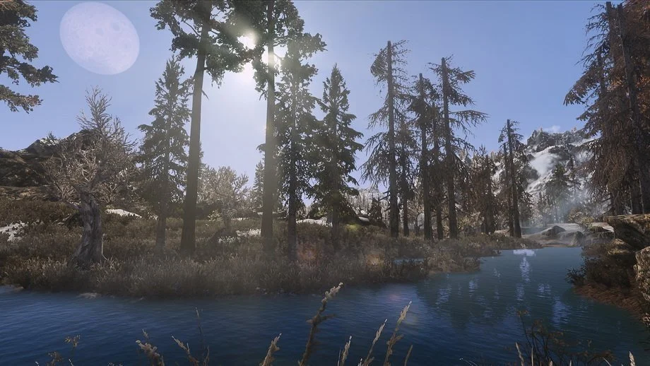 Полная переработка воды. Мод меняет текстуры рек, озёр и моря, добавляет волнение, более реалистичную прозрачность и отражения поверхности. Вода перестаёт выглядеть как статичная плоскость — особенно заметно в прибрежных и речных локациях, которых в Скайриме немало. Мод заметно улучшает восприятие этих зон.