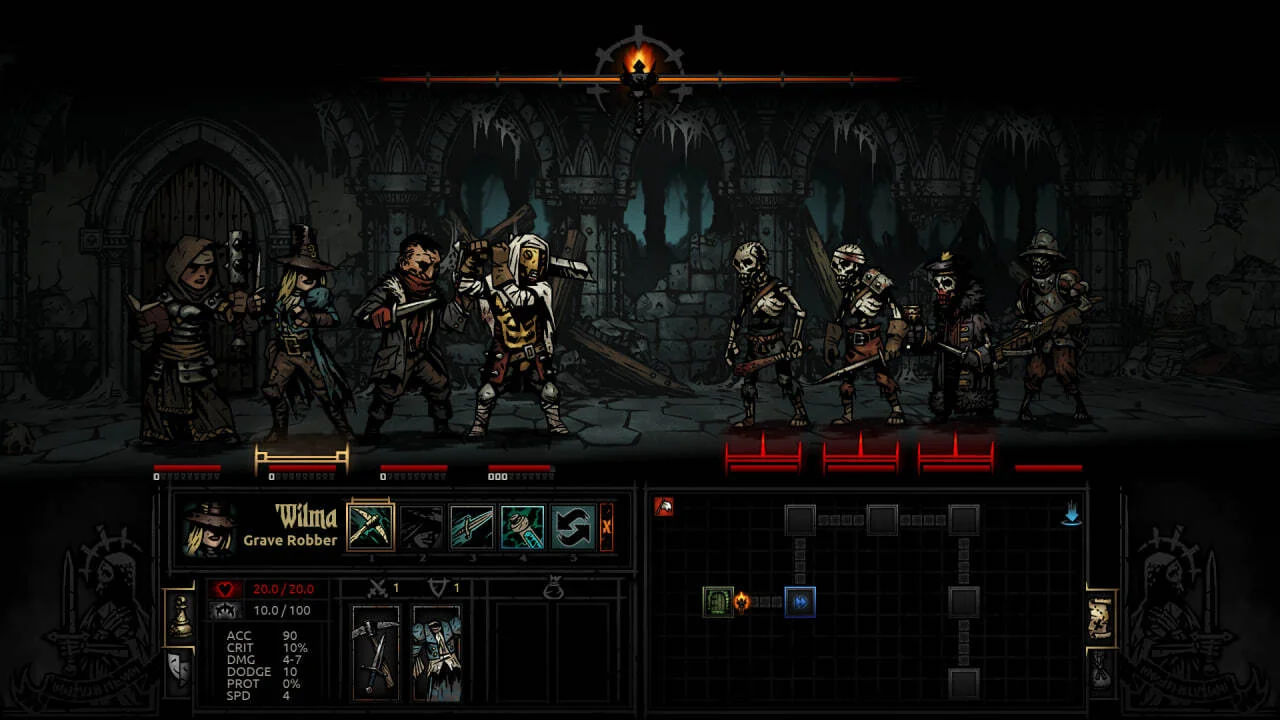 Darkest Dungeon от Red Hook Studios превращает управление психическим состоянием героев в ключевую механику. Герои не просто получают урон — они сходят с ума. Паранойя, трусость, мазохизм — случайные черты меняют поведение прямо во время боя. Пошаговые бои выстроены в линейку: четыре героя против четырёх врагов, позиция в строю определяет доступные действия. Мрачная атмосфера, неотступное давление стресса и высокий порог вхождения делают Darkest Dungeon одной из самых атмосферных тактических RPG на ПК.