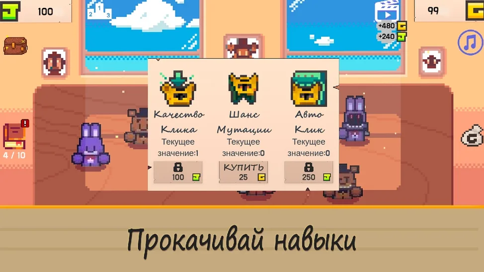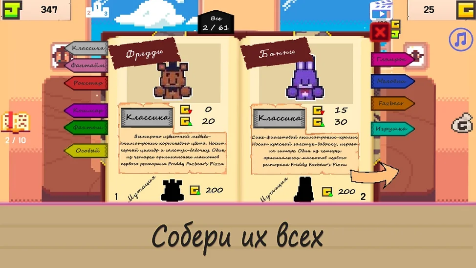 В уникальном кликере "Аниматроники: Вырасти их всех!" ты сможешь погрузиться в мир аниматроников и собрать огромную коллекцию!