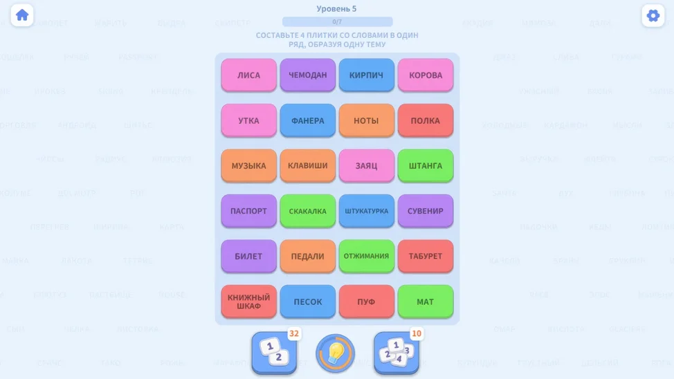 Мне нравится игра и фоновая музыка, честно залипла, но хотелось бы иметь какие-то паузы перед тем как сложится группа слов или уровень: иногда комбинации получаются совершенно случайно, и я даже не знаю какой в итоге был правильный ответ.