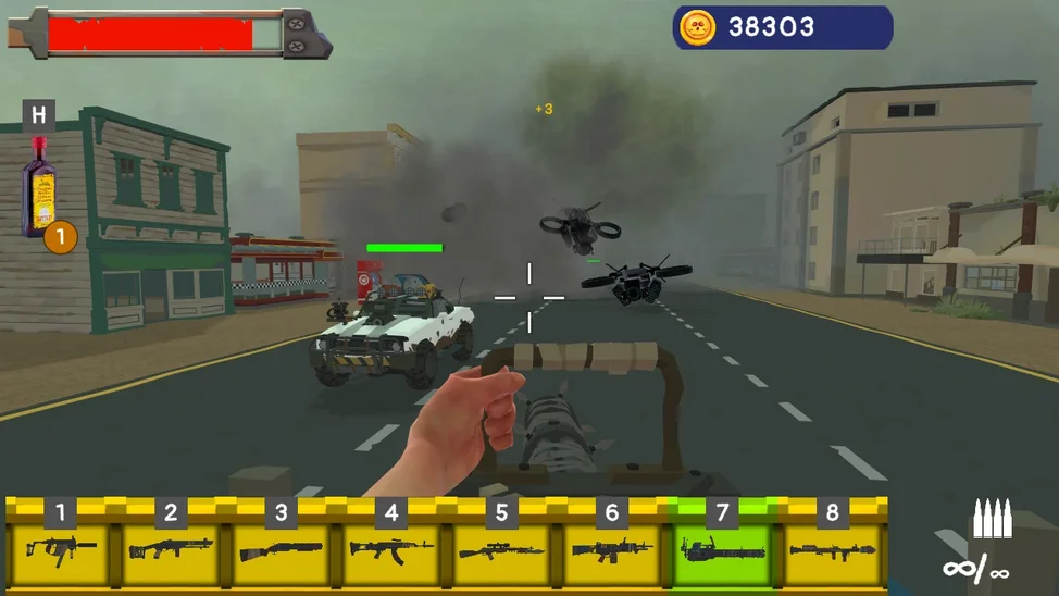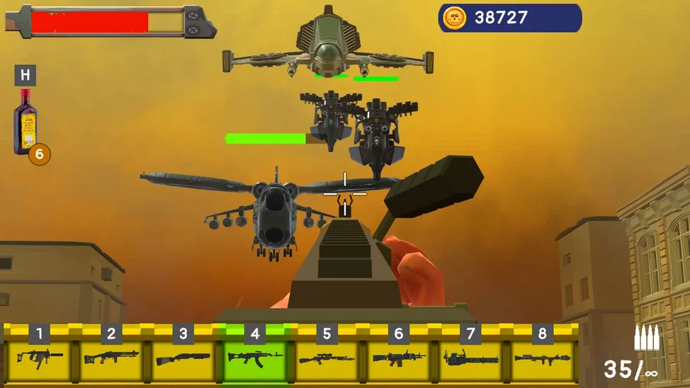 Но и у тебя не слабый арсенал - от револьвера и автоматов до минигана и базуки.