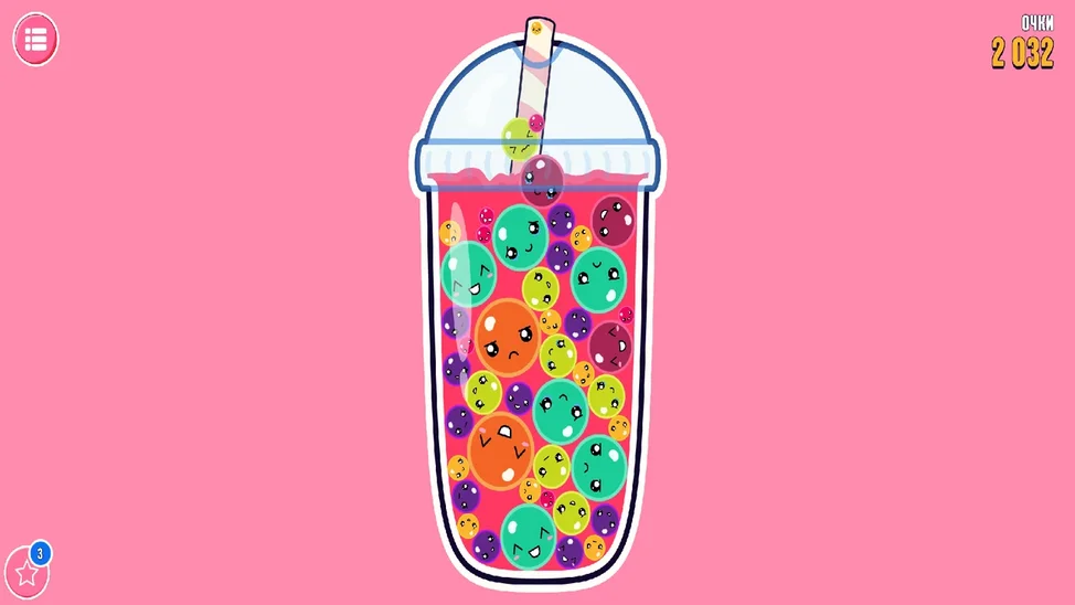 Перед Вами стаканчик с Бабл Ти! Зарабатывай очки, объединяя шарики тапиоки. Начинай с самых маленьких шариков и объединяй их по цвету, превращая в один большой шарик. Простое управление будет доступно каждому: нажимайте на одну из сторон стаканчика, чтобы выбрать куда упадет шарик. Создавайте самые большие шарики тапиоки, чтобы получить как можно больше очков. Яркие визуальные эффекты не дадут оторваться от игры, а звуки в игре напоминают, как шарики из Бабл Ти взрываются у вас во рту! Если возникнут сложности, в нижнем углу есть кнопка, которая поможет убрать все маленькие шарики и освободит место в стаканчике. Игра идеально подойдет для тех, кто хочет расслабиться, кто любит казуальные игры с простым геймплеем, кто не любит, когда игра резко заканчивается и, конечно, для любителей Бабл Ти всех возрастов!