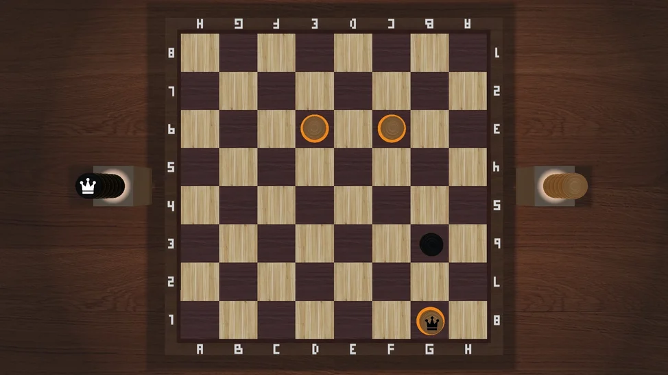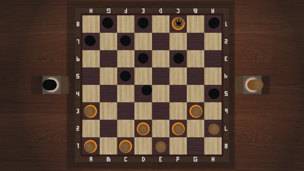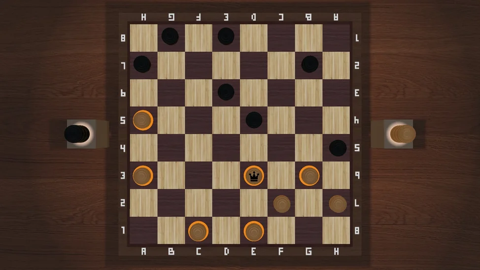Это классическая настольная игра про шашки с несколькими вариантами правил: американские, русские, португальские и бразильские шашки.