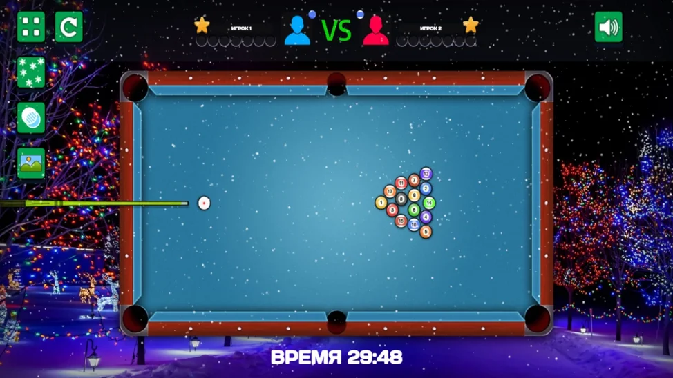 - классический бильярд, в котором есть два режима игры: одиночный и на двоих.