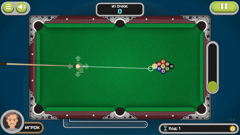 Играйте в бильярд против компьютера и его искусственного интеллекта, который мы разработали специально для этой игры. Игрок, управляемый компьютером, умный и играет хорошо.