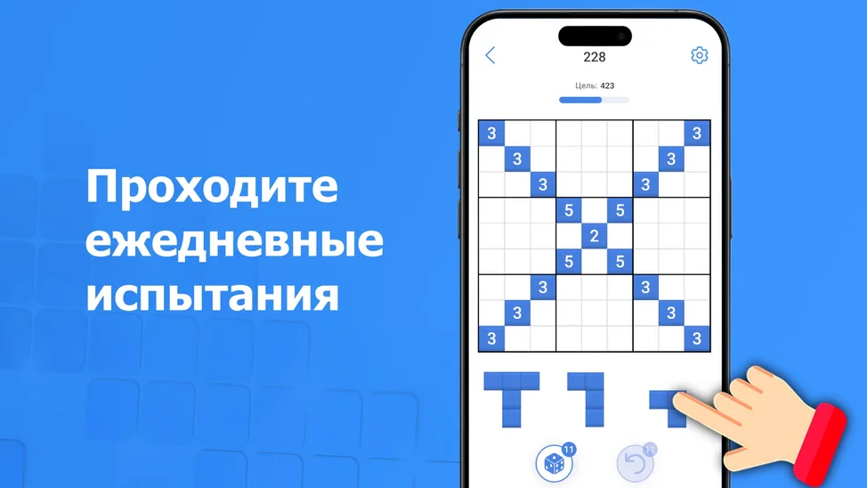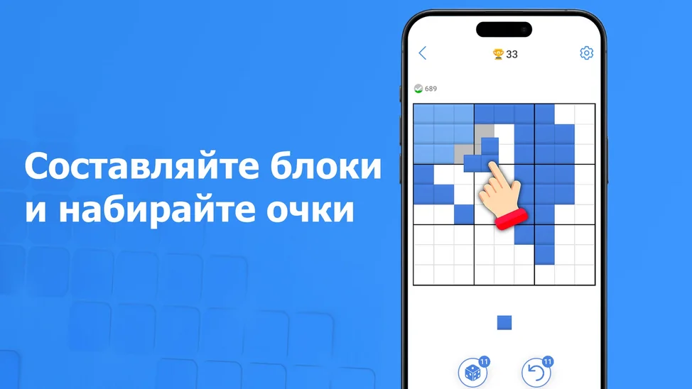 Разместите блоки на доске и заполните строки, столбцы или квадраты, чтобы убрать их из игры. Играйте пока поле не заполнится, чтобы побить свой рекорд!