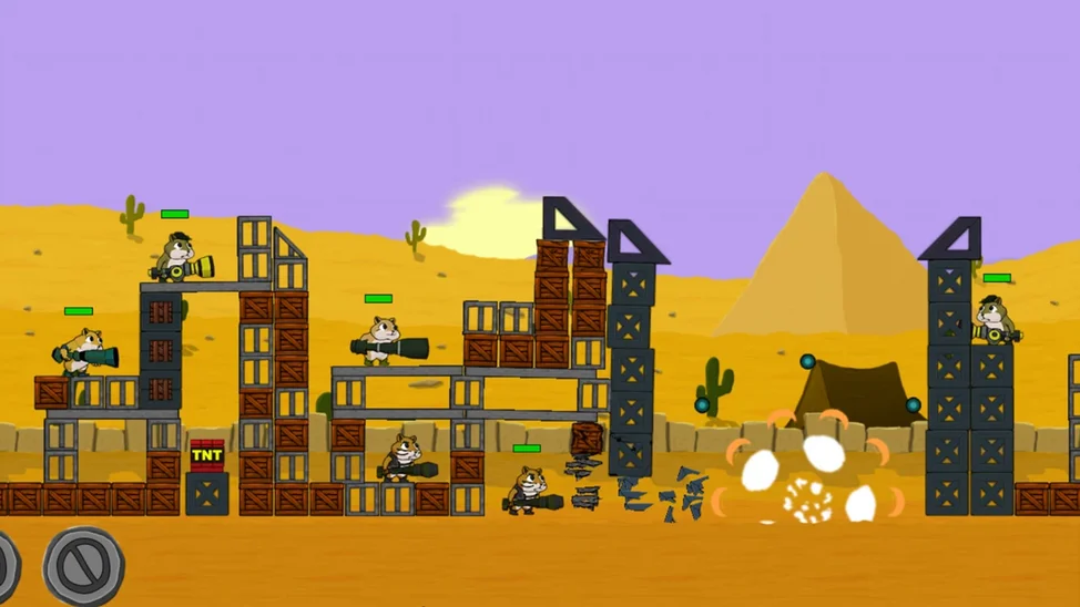 MagnificentMrFox5 февраляВас ждут 40 интересных уровней — выбирайте свою стратегию, чтобы уничтожить врагов и сохранить боевой отряд. Вы можете использовать бойцов по одиночке, а также нанести массированный авиаудар по позициям врага. Забавная анимация, яркая графика, смешные хомячки увлекут вас с первой секунды. С каждым уровнем ваш отряд будет пополняться пушистыми бойцами и новыми видами оружия. Открывайте доступы к красочным локациям: пустыня, средневековый замок и многие другие места ожидают вас. Зарабатывайте очки и веселитесь на полную катушку!