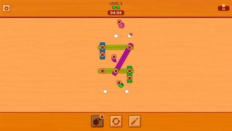 Цель игры: Это закрутить болты с досок🔧! Закрутите все болты с досок, чтобы они упали на дно 👇. Тогда вы пройдете уровень😎