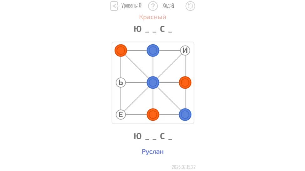 Крестики-нолики плюс Поле чудес. Выставьте свои фишки в линию раньше соперника. Двигайте фишки по линиям, если победить быстро не удалось. Собирайте буквы и победите соперника первым собрав спрятанное слово.