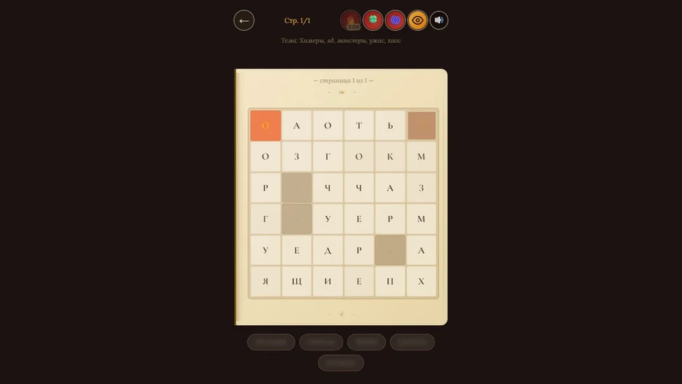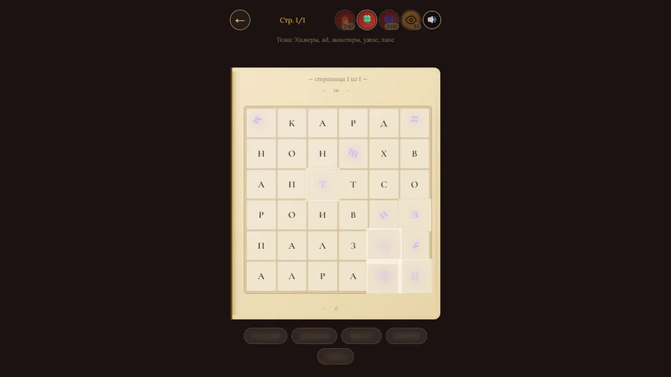 БуквоВарь — уютный алхимический филворд в старой лаборатории, где на полках пылятся свитки, а в углу тихо бурлит котёл.