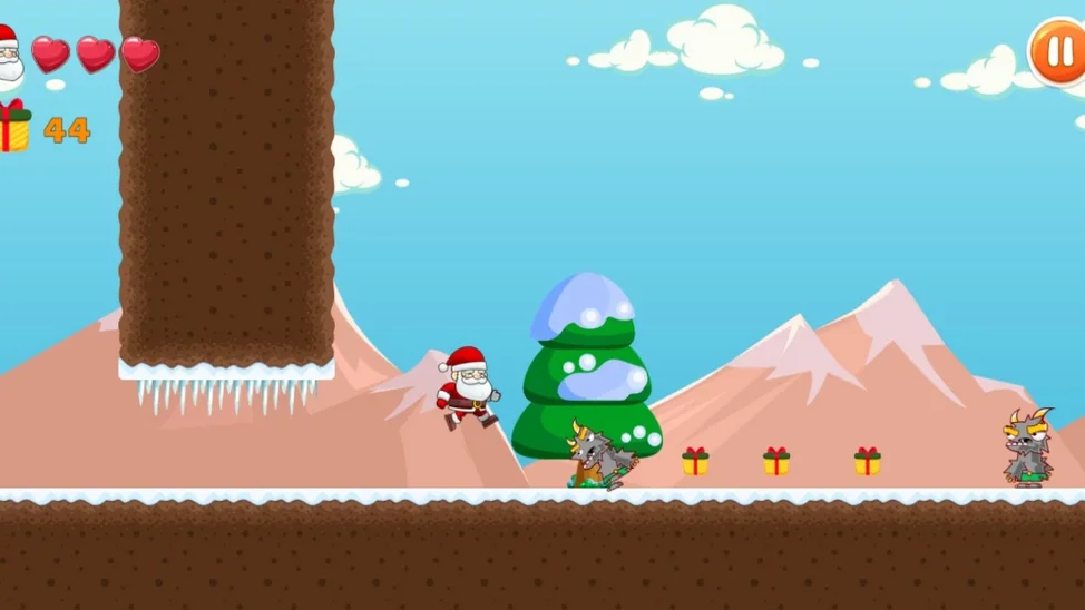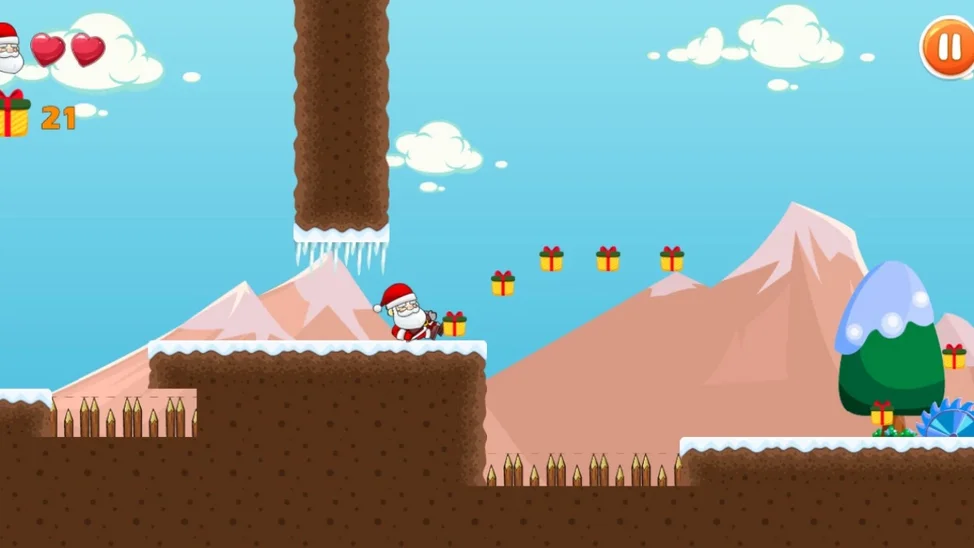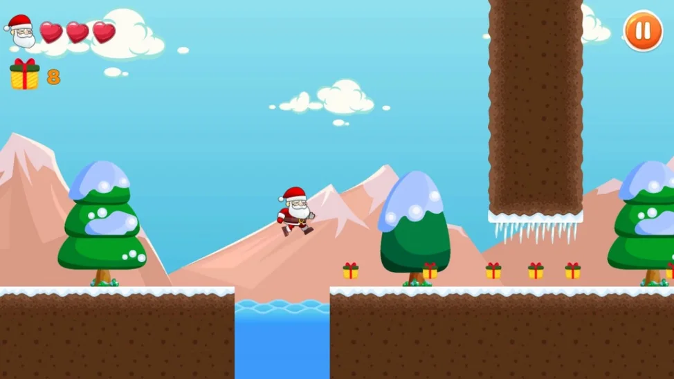 Дед Мороз растерял подарки. Помоги ему собрать их все. Только не забывай преодолевать неожиданные препятствия, которые поджидают главного героя. Постарайся собрать как можно больше баллов и пройти все уровни. Игра понравиться как детям, так и взрослым.