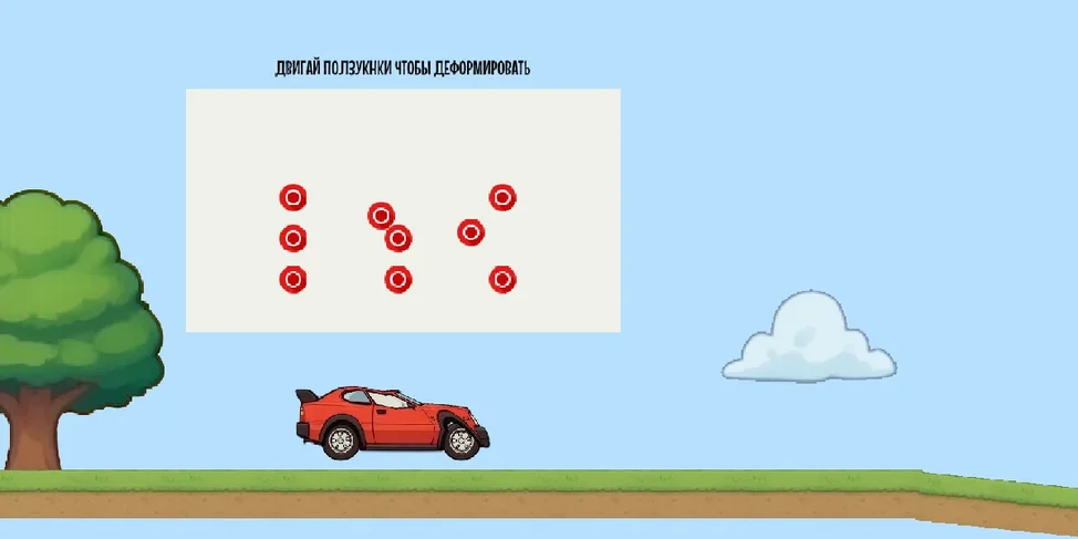 Деформируй машину! - казуальная игра про машины с физикой, как в популярных играх про езду по холмам, например, «Хилл Климб Рейсинг», но с уникальной механикой: вы можете деформировать машину, делая её по-настоящему уникальной!