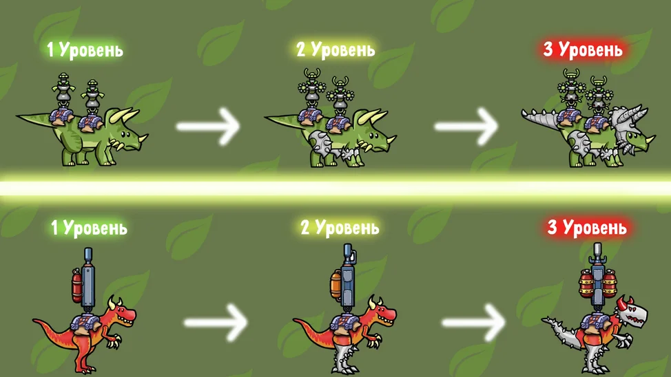 В игре представлены различные локации и режимы, а также дополнительные способности, которые помогут вам в борьбе. Проходите уровни, собирайте листья и улучшайте динозавров, открывая новые возможности. Защитите родной дом динозавров от каменных захватчиков!