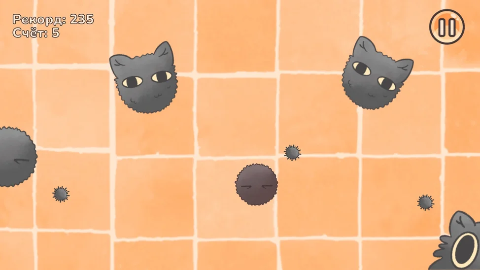 Поглощай другие пылинки, избегай крупных врагов и расти, чтобы увидеть все фазы твоего Пыльного Кота!