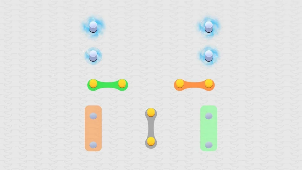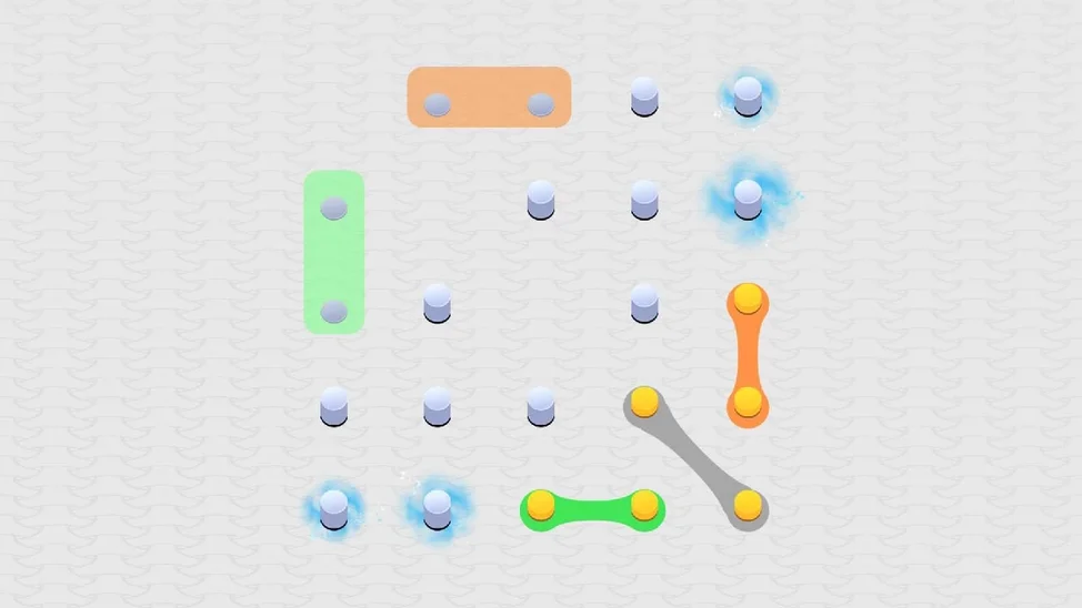 В этой игре нужно расставить резинки по своим местам. На старте уровня резинки разбросаны по полю. Ваша задача — передвигать резики по шпилькам (пинам) и расставить резики по платформам соответствующего цвета. Ваша задача — решать логические задачки. Не всегда придумать решение будет просто. Порой вам понадобится напрячь свои логику и умение ориентироваться в пространстве.