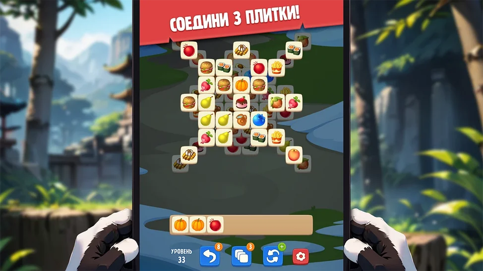Собирайте три одинаковые плитки, чтобы очистить доску. Ваша цель - полностью очистить игровое поле от разнообразных плиток с изображениями. Уровни начинаются легкими и расслабляющими, но постепенно становятся все сложнее и увлекательнее!