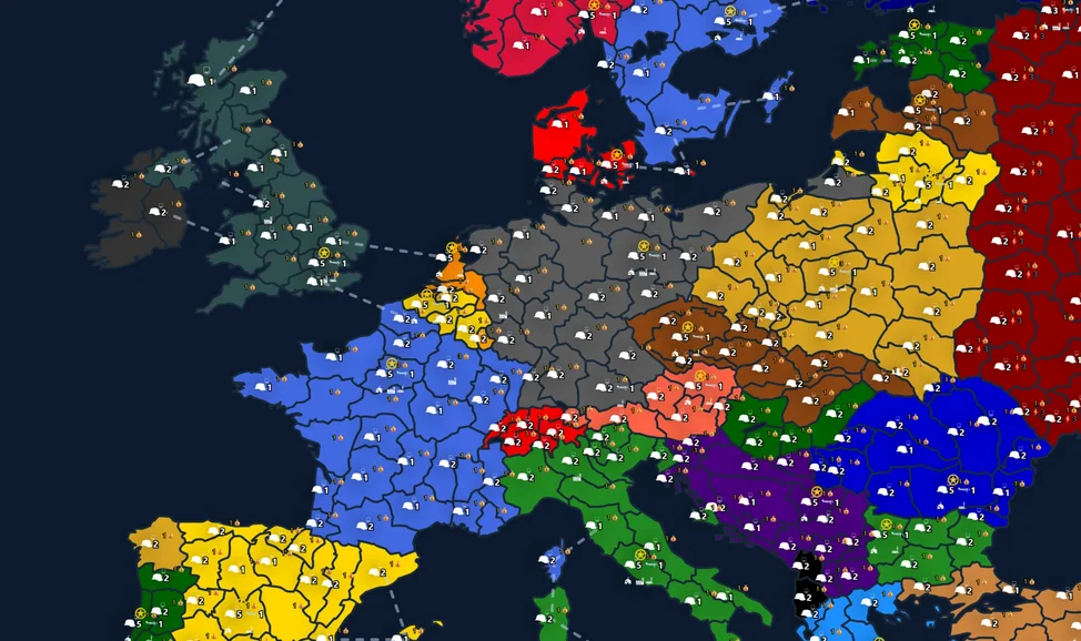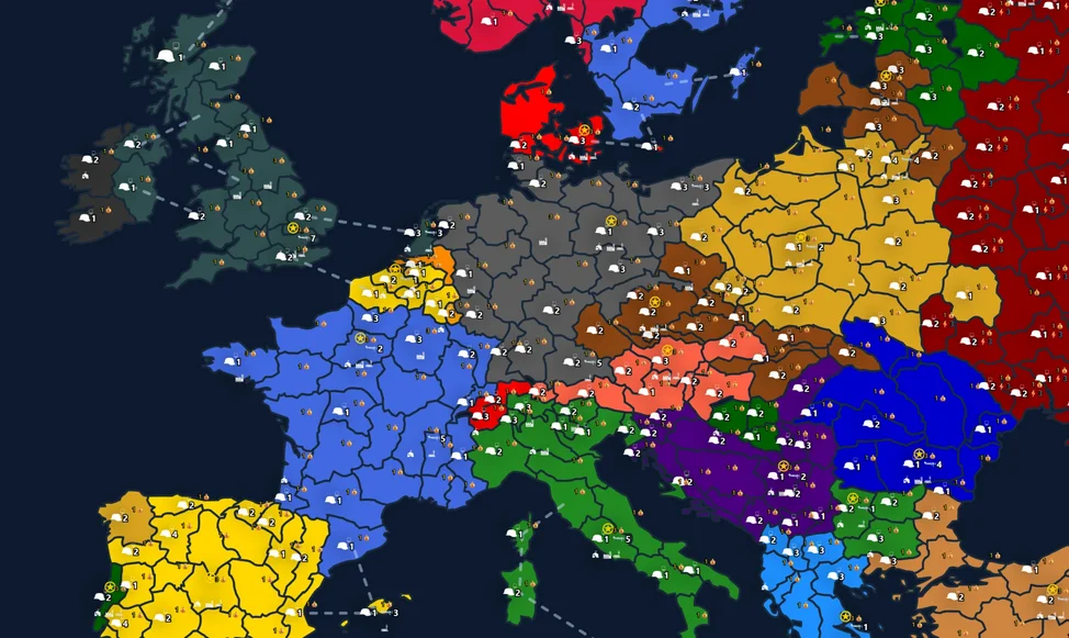Европа в огне — пошаговая стратегия с детальной картой Европы, разделённой на 369 регионов. Управляй экономикой, строй фабрики и казармы, исследуй технологии, заключай союзы или объявляй войны.