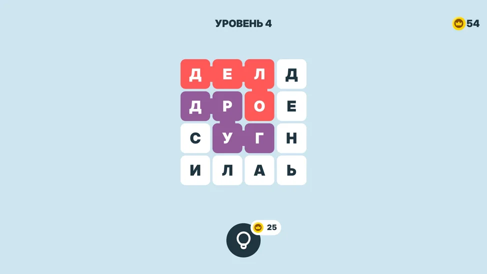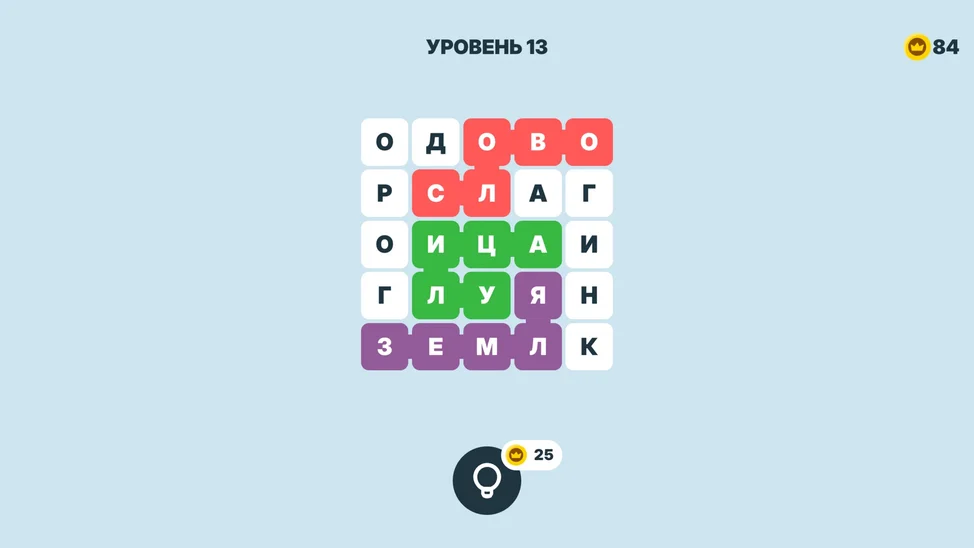 Главная задача — продвигаться вперёд, проходя всё больше уровней. На каждом этапе вам предстоит отыскать все спрятанные слова на поле. Как это сделать? Просто проведите пальцем (или курсором) от первой буквы слова к последней и соберите его целиком. При правильном выборе ячейки подсветятся яркими цветами. Как только все слова найдены, уровень считается пройденным! На особо сложных этапах на помощь придут подсказки, доступные за внутриигровые монеты. Их можно заработать, успешно угадывая слова. Играйте регулярно — это не только весело, но и отлично тренирует память, внимание и словарный запас!