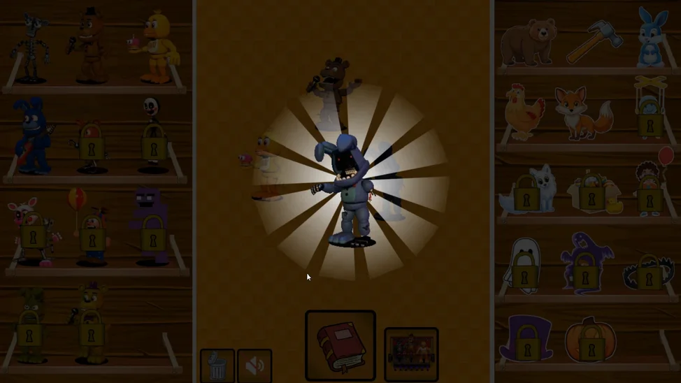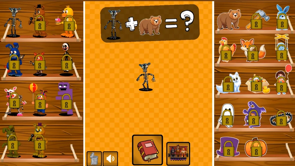 Смешая и Создай: На основном экране тебя ждёт алхимическая лаборатория. Бери детали с полок, комбинируй их на игровом поле и открывай рецепты всё новых и новых аниматроников! Что получится, если соединить каркас с плюшевым мишкой? А если добавить к результату молоток? Экспериментируй, чтобы заполнить весь справочник.