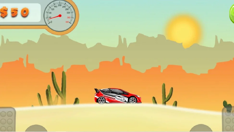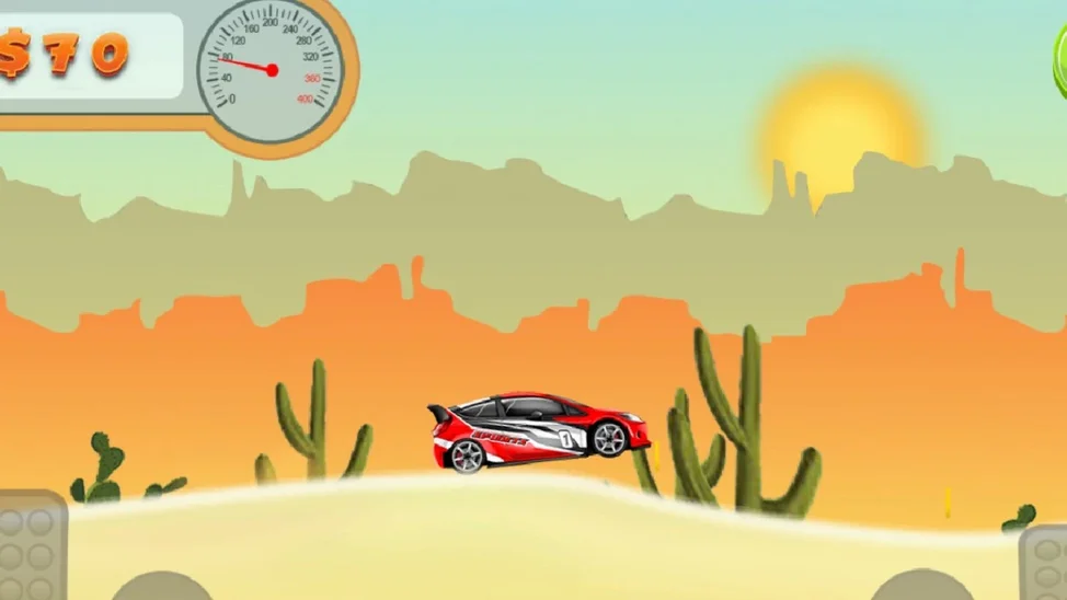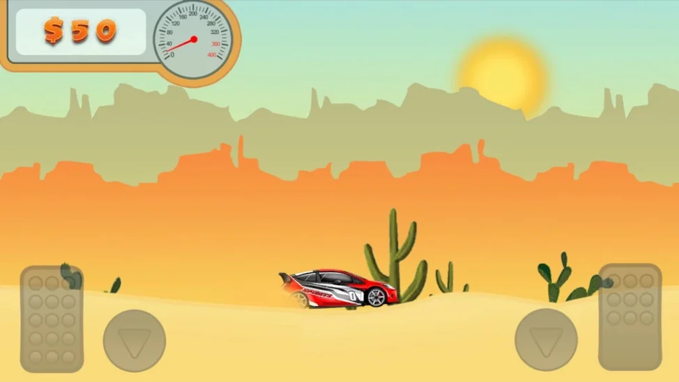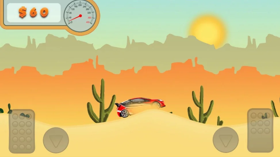 Ралли в пустыне. Внимательно управляй гоночным автомобилем, чтобы преодолеть все песчаные препятствия на пути. В игре можно купить различные автомобили.