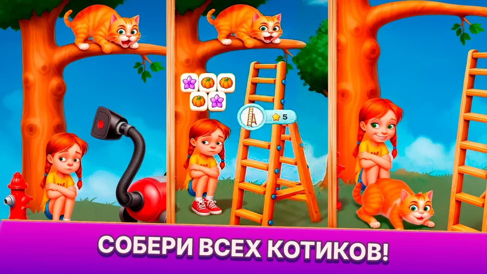 Начните приключение, которое принесет вам часы радости и веселья. Поднимите свой игровой опыт на новый уровень с классической игрой «три в ряд», которая никогда не стареет! А забавные котики будут сопутствовать вам в этом приключении!