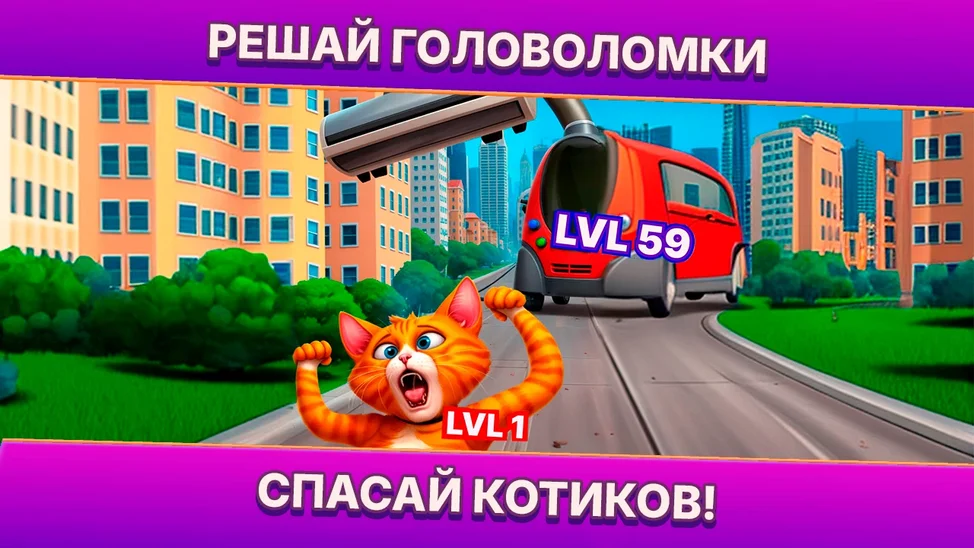 😻 Добро пожаловать в уютный Котоград! Спасайте котиков и побеждайте злодея, решая головоломки в стиле «три-в-ряд»!