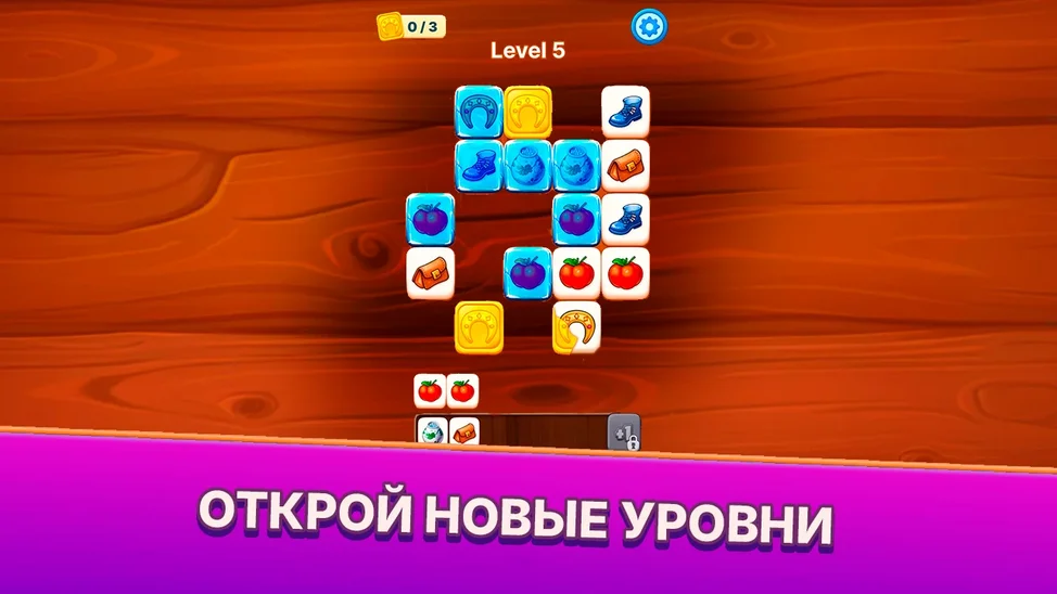 🎯 Цель игры – найти и собрать три одинаковые плитки на панель сборки, чтобы они исчезли.