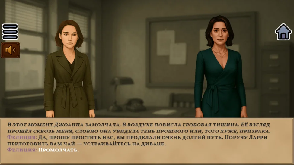 «Грехи и Желания» - захватывающая визуальная новелла в жанре детективного расследования с элементами романтики. В роли детектива Фелиции вы отправитесь в деревню Вест-Албен, чтобы раскрыть тайну исчезновения аристократа Вильяма. Вас ждёт интерактивная история с множеством сюжетных развилок, система отношений, выборы, влияющие на концовку, и любовные линии с Альбертом, Феликсом и Виктором. Атмосфера мрачного особняка, туманного озера и деревни, полной секретов, создаёт ощущение постоянной интриги. Ваши решения определят - раскроете ли вы правду или станете частью тёмных тайн Вест-Албена.