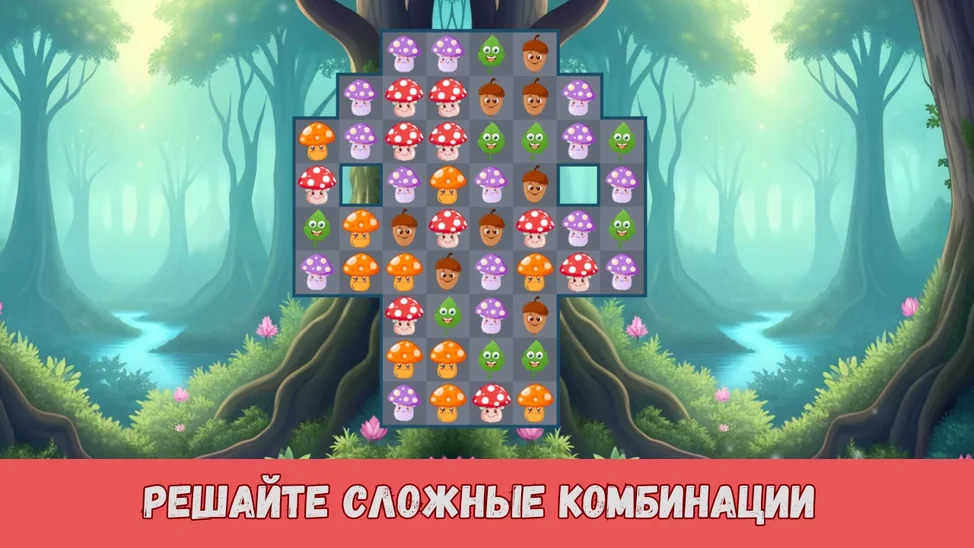 Собирайте группы из трех и более грибочков, выполняйте интересные задачи и разблокируйте новые уровни! Каждый уровень предлагает уникальные головоломки и новые испытания. Чем больше совпадений, тем больше очков и бонусов вы получите! Проходите уровни, открывайте уникальные усиления и создавайте собственные стратегии для победы.
