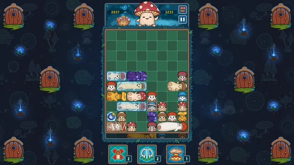 Передвигайте блоки пальцем или мышкой. Ряд уничтожится, если все ячейки в нём заполнены. Используйте бустеры, чтобы играть было проще, а также внимательно следите за особыми грибными блоками! Вы проиграете, если блоки достигнут самого верхнего ряда.