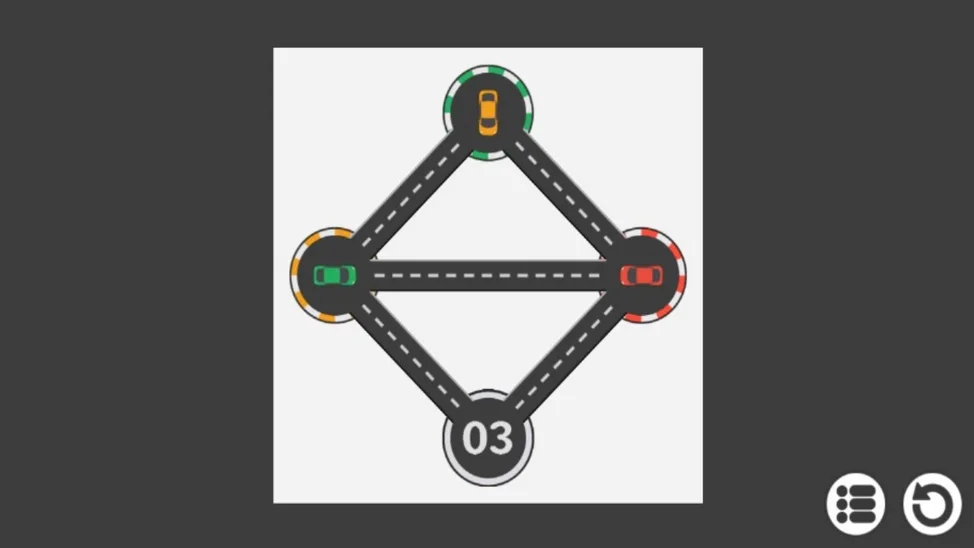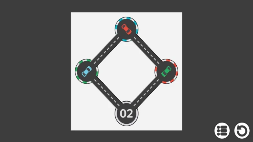 Расставьте автомобили по местам парковки. При этом цвет машины должен совпадать с цветом парковочного места. Количество попыток не ограничено.