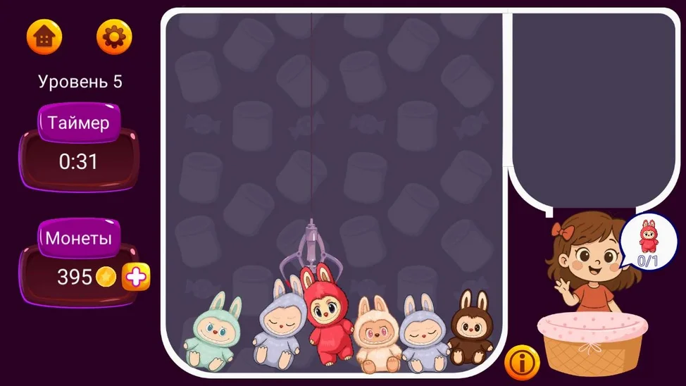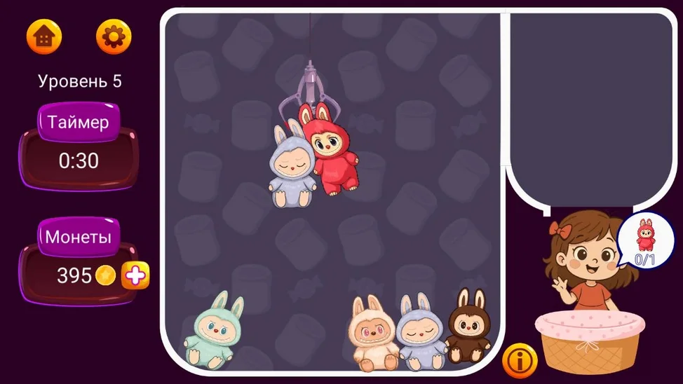 Сможешь ли ты пройти все уровни, собрать всю коллекцию лабубу и стать мастером крана-машины?
