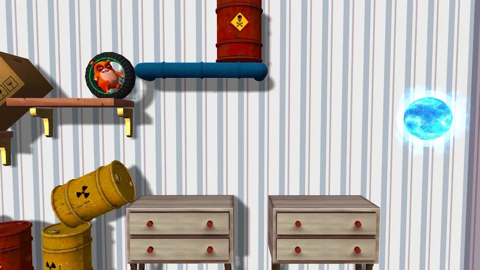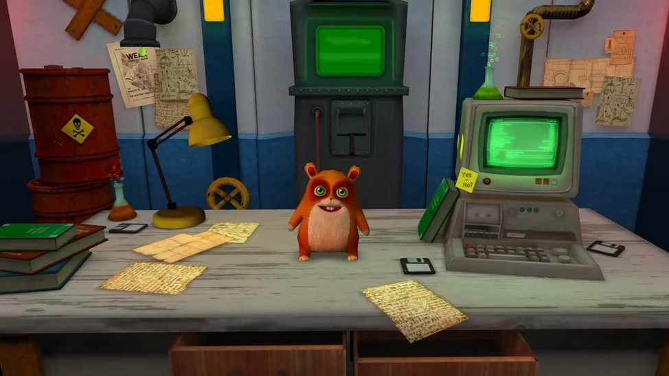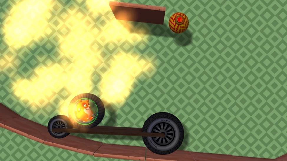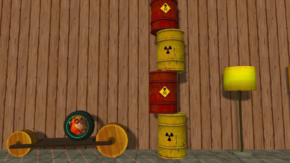 Помоги смышлёному хомяку сбежать из лаборатории чокнутого профессора с помощью его изобретения — «хомицикла»! Прыгая по различным предметам интерьера, доберись до портала в конце комнаты, но будь осторожен: пол охраняет лазерная сигнализация — коснёшься его, и хомяка тут же поймают!