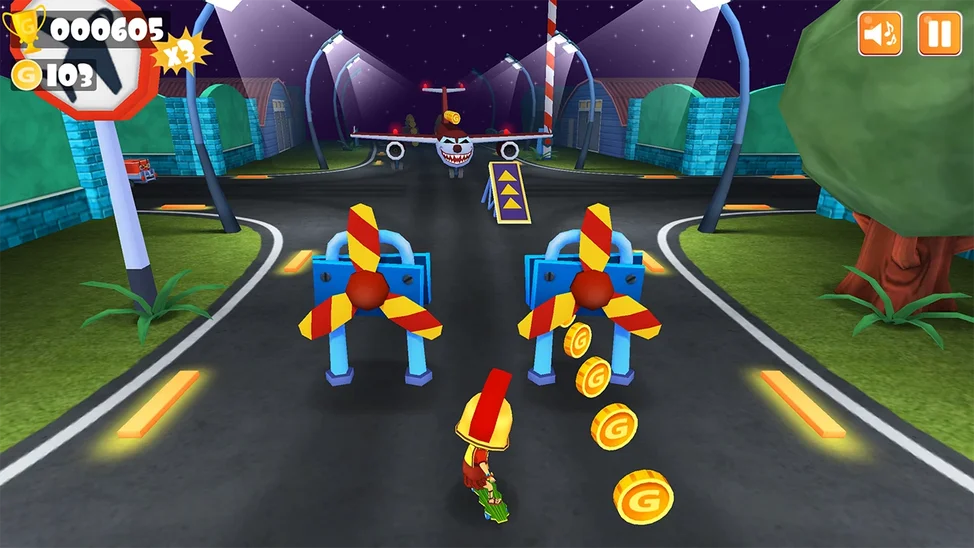 Помоги маленьким хулиганам убежать от полицейского, который постоянно пытается их поймать. Постарайся собрать на дороге как можно больше бонусов и монет, за которые можно купить новые крутейшие скейты и прикольных персонажей. И не забывай выполнять забавные задания, ведь от этого зависит количество получаемых тобой очков!