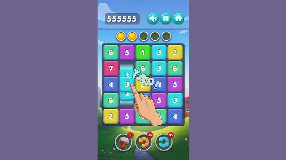 Кликай на блоки с цифрами. Три и более блоков с одинаковой цифрой соединяются и дают больше очков.
