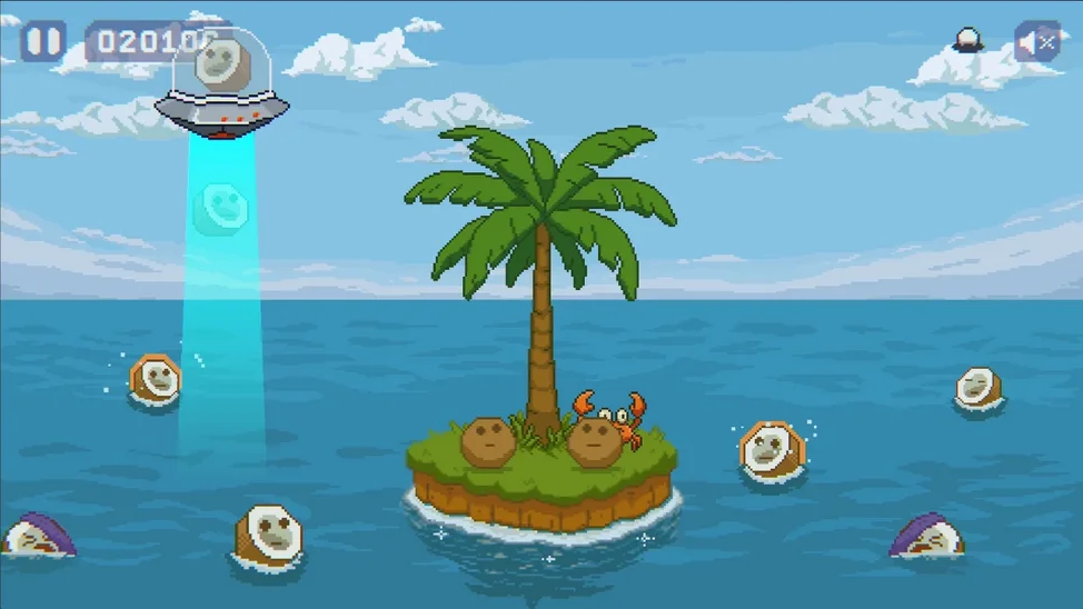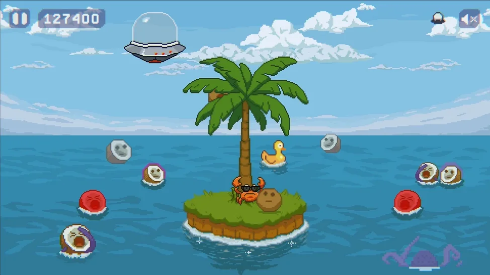 Добро пожаловать в безумный мир тропического хаоса! В этой 2D пиксельной аркаде вам предстоит управлять кокосами, падающими с пальмы. Каждый кокос можно расколоть, его половинки утонут в воде, будут похищены хитрым осьминогом или захвачены НЛО. Но берегитесь краба, который колет кокосы, и особенно взрывных уток, способных уничтожить всё на экране! Каждый элемент игры живёт своей жизнью, создавая неожиданные ситуации и забавные комбинации. Ваши действия решают, сколько очков вы наберёте и как долго сможете выжить. Яркая пиксельная графика, динамичные события и непредсказуемые механики делают каждую партию уникальной. Сможете ли вы справиться с этим кокосовым хаосом?