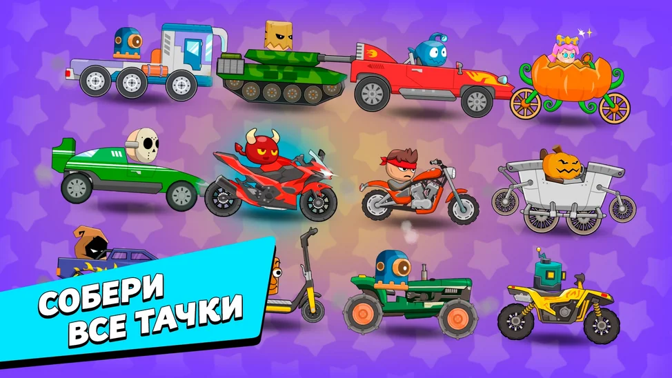 Улучшай машинки, оружие и колёса, зарабатывай деньги и поднимай свой ранг.