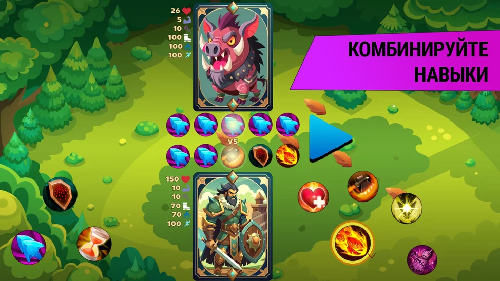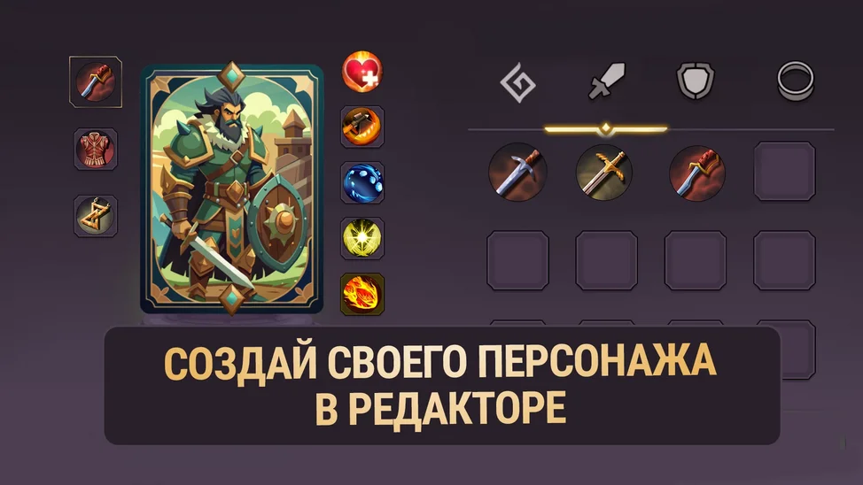Погрузись в мир тактических карточных сражений, где твоя победа зависит от грамотного выбора и комбинаций навыков! Вы сражаетесь с колодами коварных врагов. Выбирай одного из трех уникальных персонажей и погрузись в захватывающие битвы. Используй редактор персонажей, чтобы тонко настроить своего героя, добавляя уникальные способности.