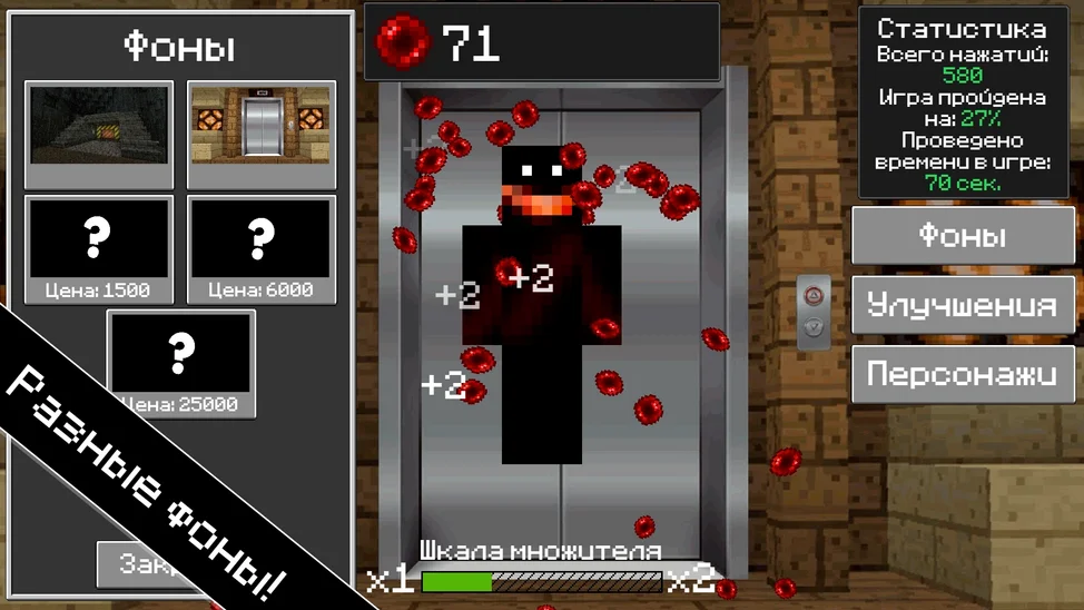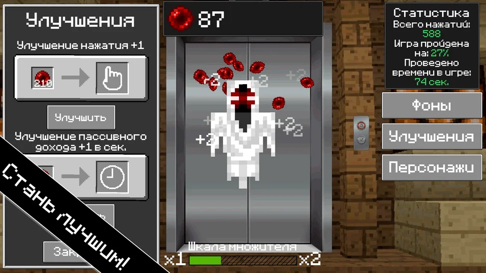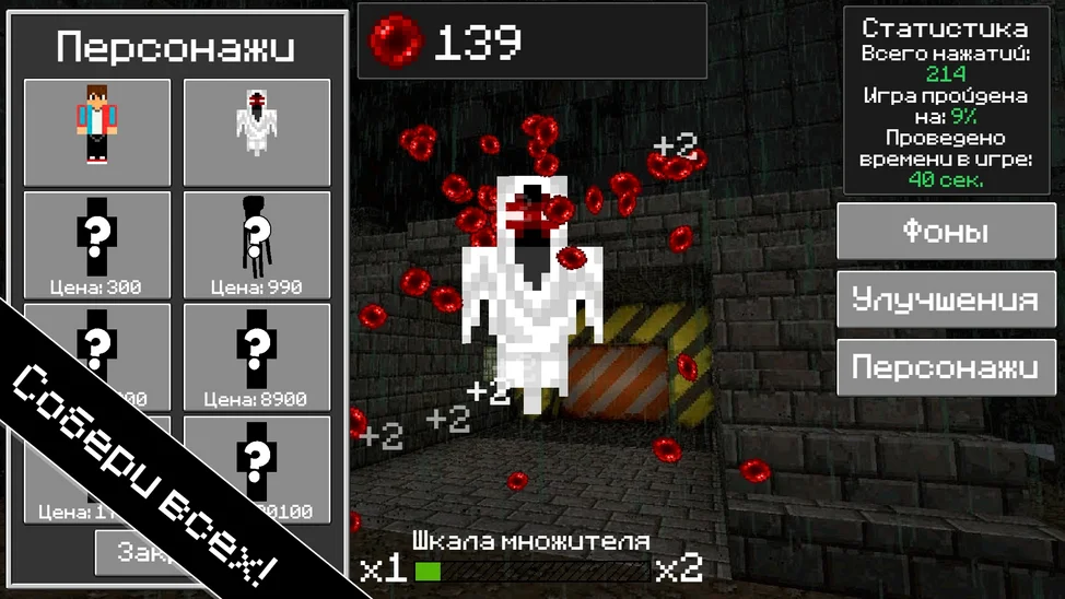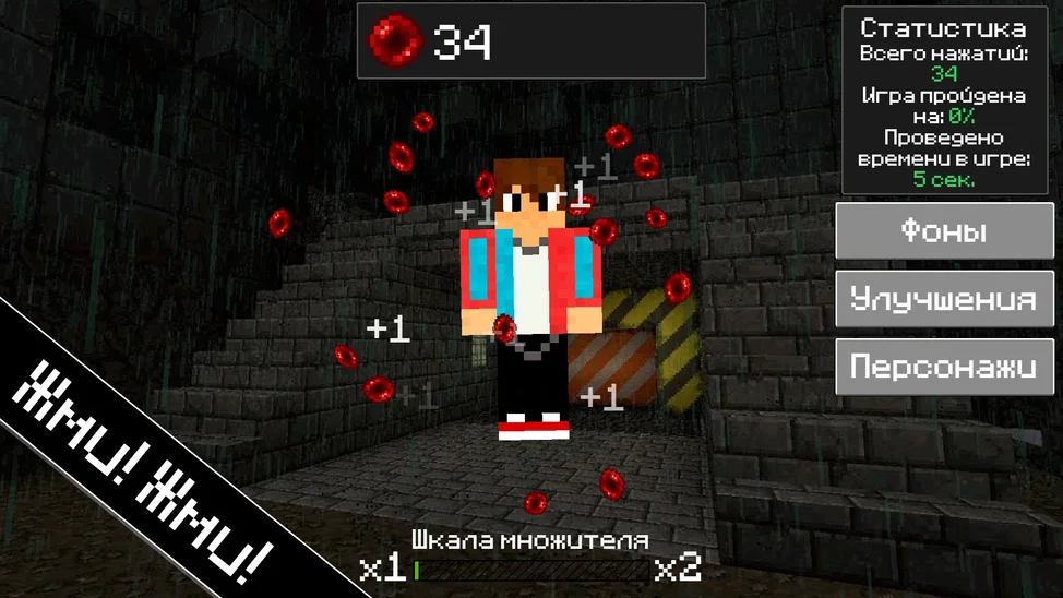 👆😃 Нажимай пальцем или мышкой на экран и собирай ценные очки! 🎮🏆 За них ты сможешь улучшить свою силу нажатия, открыть новых уникальных персонажей или выбрать крутой фон для игры! 🌟🎉 И помни про мощный бонус - шкала множителя! 😎📈 Каждые 2000 нажатий множитель получаемых очков увеличится на 1, даруя тебе ещё больше радости и успехов в этой захватывающей клик-игре! 🚀💥