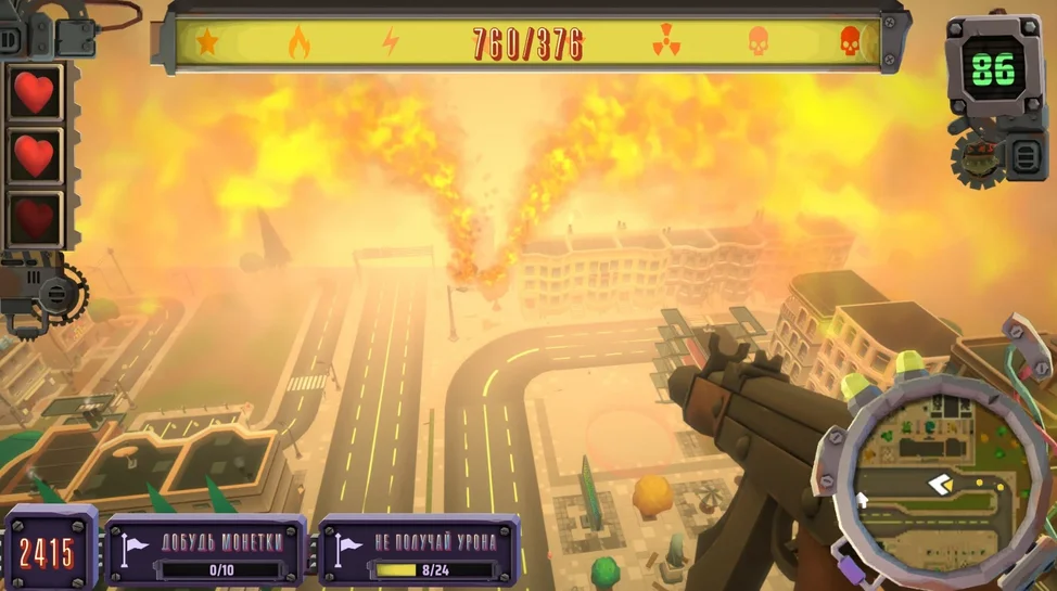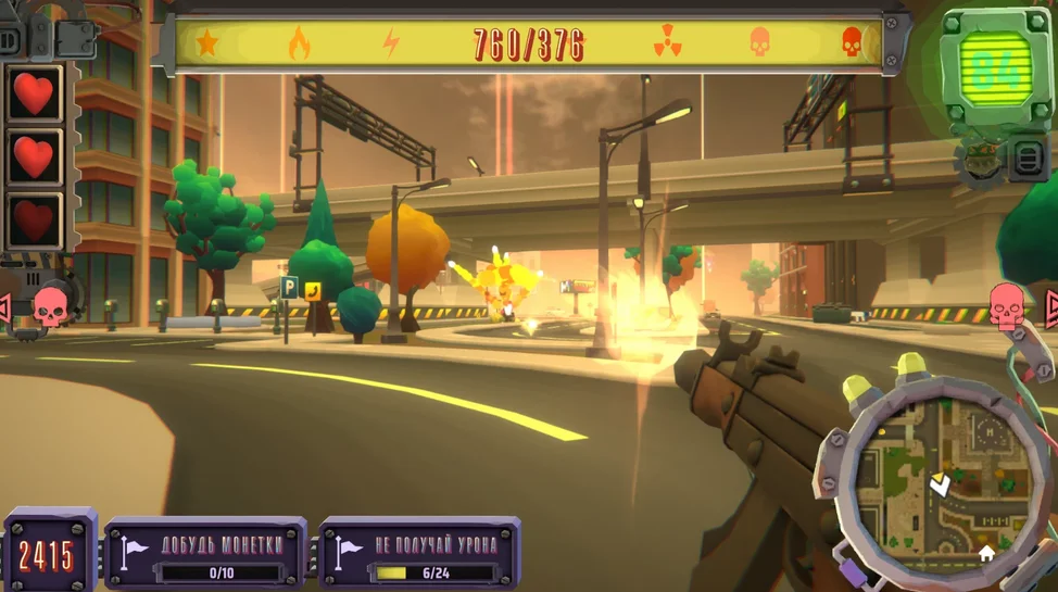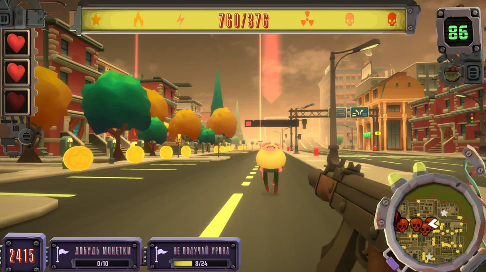 Завершив гонку, вы сможете конвертировать свои достижения в победные очки и купить уникальное невероятно мощное оружие!