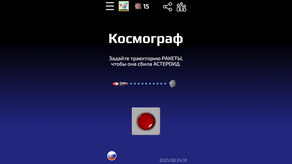 Двигай синие ручки чтобы настроить параметры траектории ракеты. Целься в астероид. Запускай ракету красной кнопкой. Молись.