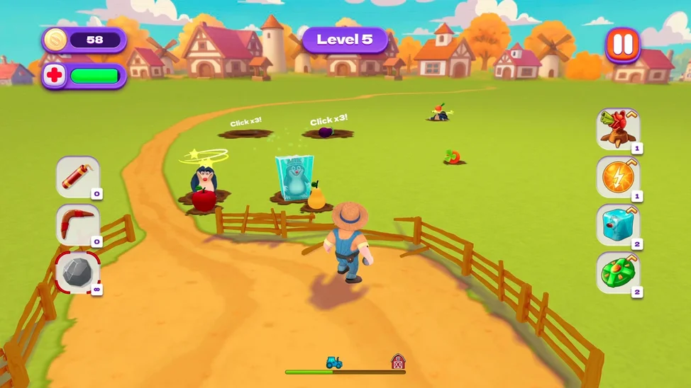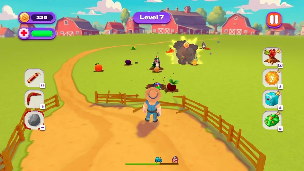В игре Pesky Moles вам нужно защищать свой огород от кротов в течение определенного времени. Чем больше вредителей вам удастся нейтрализовать и чем больше урожая вы спасете, тем больше монет вы получите. На заработанные монеты вы можете купить ловушки, которые помогут вам защитить свой огород.