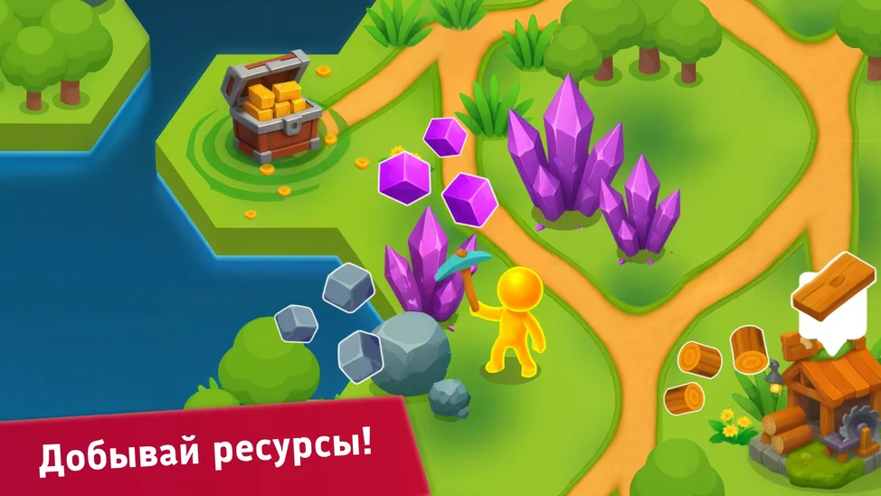 Но будьте осторожны! Заповедные земли находятся под защитой могущественных существ. Вас ждут стычки с дикими монстрами, древними каменными големами и другими чудищами, что охраняют самые ценные сокровища. Чтобы одолеть их, вам нужно будет постоянно развиваться: собирать древесину, камень, металл, чтобы улучшать свои инструменты и оружие.
