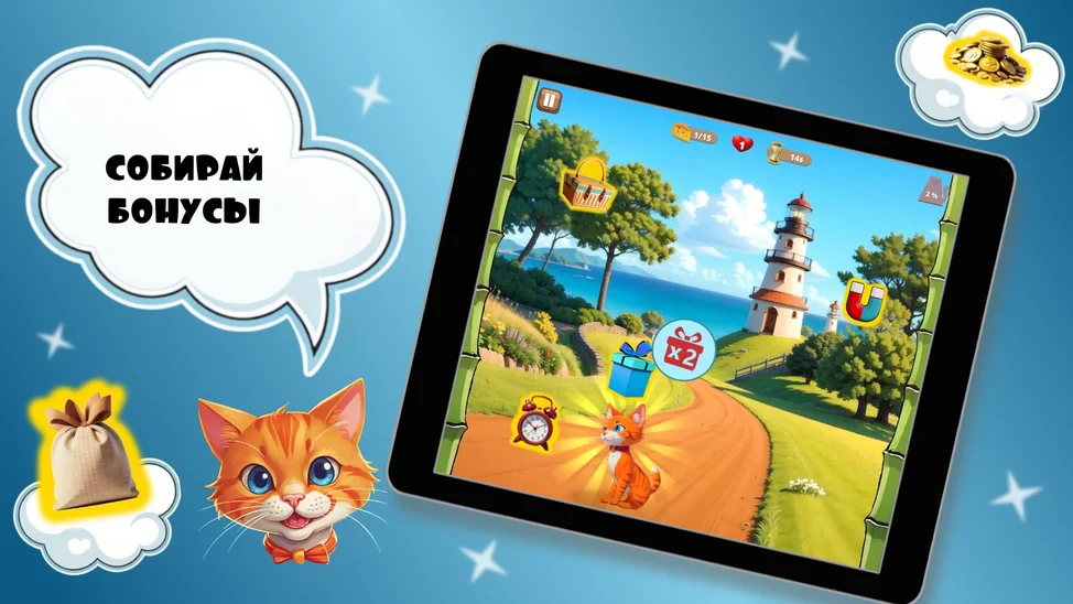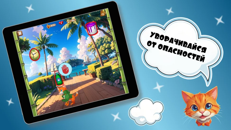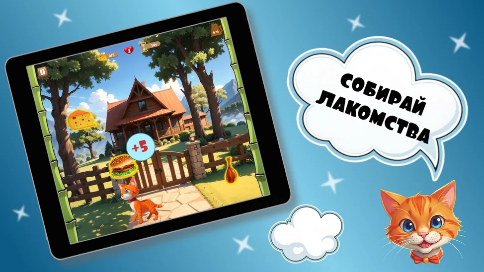 Ловкий Рыжик — это увлекательная игра, которая подарит Вам массу удовольствия и ярких эмоций! Супер кот Рыжик отправляется в потрясающее путешествие по миру, ловя падающую еду и уворачиваясь от опасных предметов. При прохождении игры Ваша задача - помочь питомцу исследовать мир, собирая вкусняшки и избегая препятствий. Вы отправитесь в путешествие по разным местам и будете открывать новые виды лакомств. Но будьте осторожны, так как мир полон опасностей, которые могут навредить вашему рыжему другу. Вам нужно быть быстрым и ловким, чтобы обезопасить своего котика. Благодаря милой графике и захватывающему геймплею, это приложение идеально подходит для всех, кто любит еду и интересные игры про кошек. Так что не стоит ждать, помогите своему голодному рыжему коту поймать все вкусняшки, которые он сможет найти на своем пути!