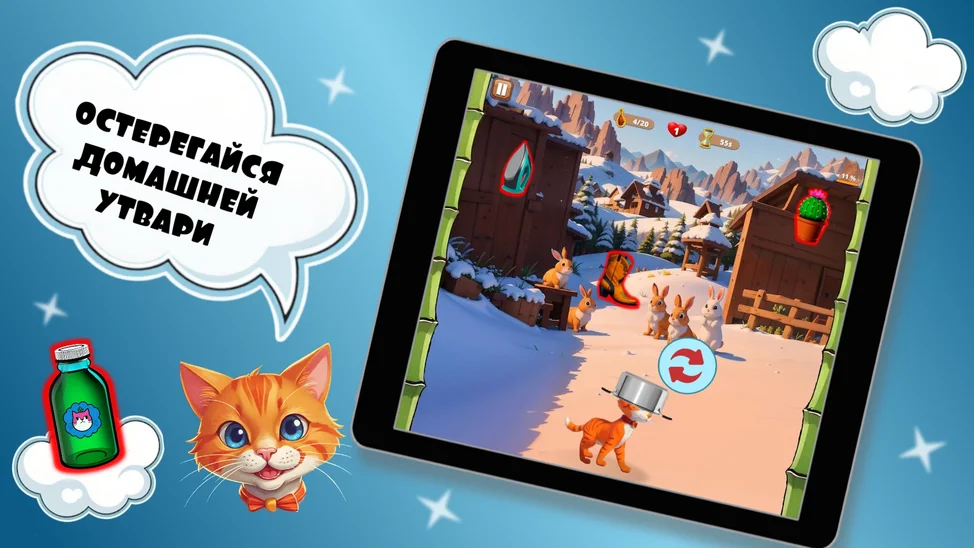 Казуальные, Аркады, На ловкость, Животные, Коты, Милая, Веселая, Таймкиллер, Еда