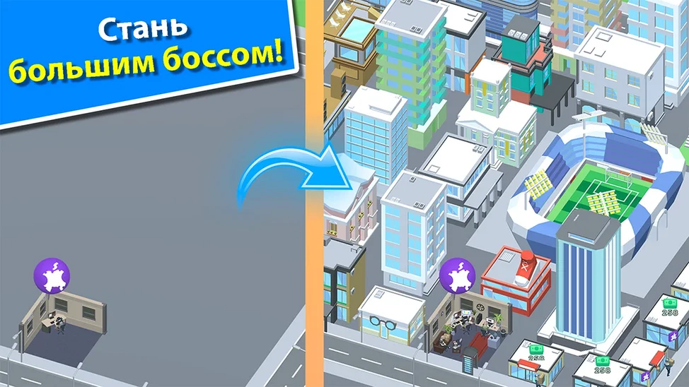 MagnificentMrFox5 февраляВ вашем распоряжении пустой город — начните с покупки небольших офисов. Зарабатывайте камни, чтобы разблокировать бонусы и ускорить работу. По мере развития офиса вокруг него будут появляться здания. Ваш доход зависит от курьеров — чем быстрее они перемещаются, тем больше денег вы получите. Качественная 3D графика и простой интерфейс — главные достоинства симулятора. Вы можете увеличивать число сотрудников, покупать новые магазины и прокачивать доход любым доступным способом. Поднимайтесь по карьерной лестнице, инвестируя свои ресурсы и открывая множество успешных компаний!