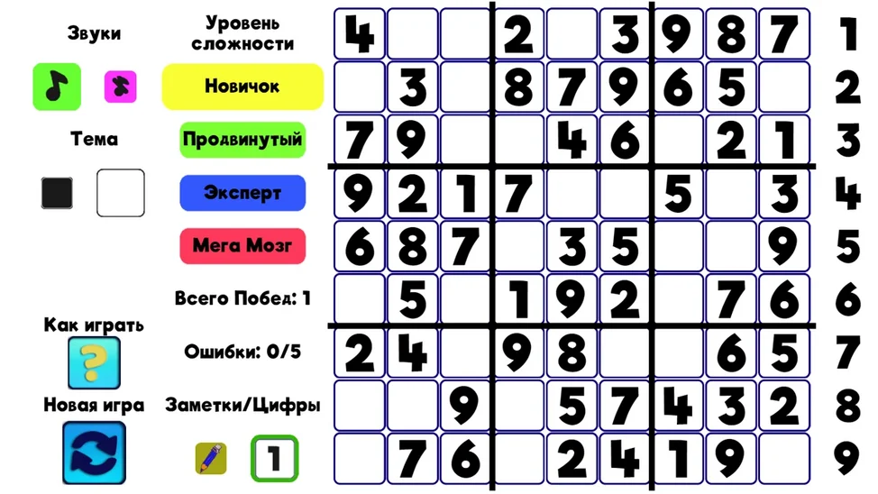 Мастер судоку – классический судоку – бесплатная, браузерная игра
