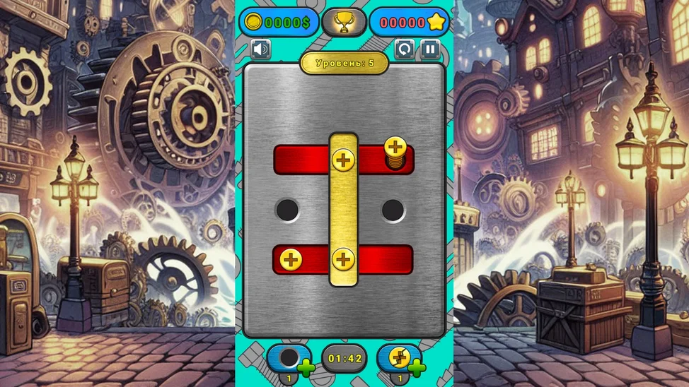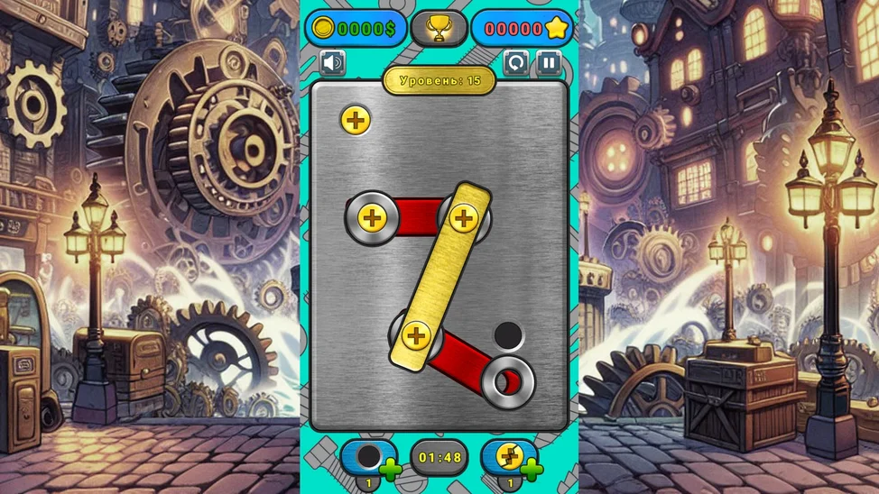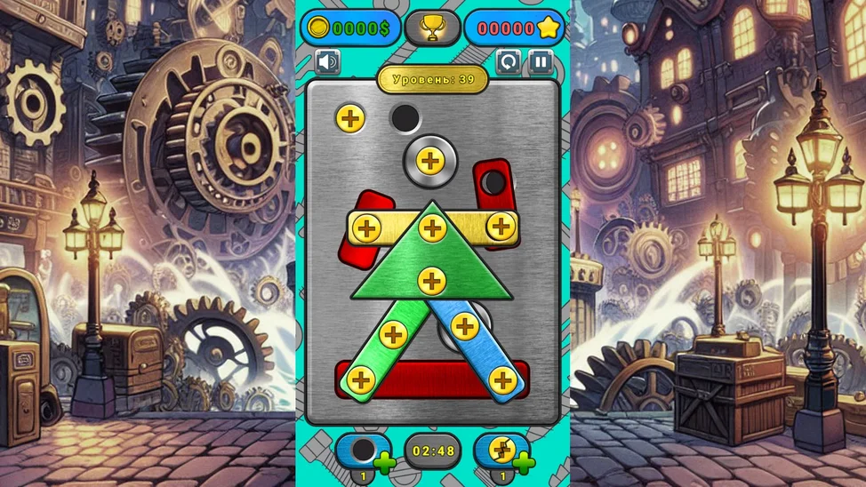 Мастер винтов - логическая игра в основе которой лежат головоломки из металлических планок, прикрученных винтами к подложке. Для решения которых необходимо открутить, в правильной последовательности все винты, удерживающие металлические планки, используя свободные отверстия и специальные приспособления.