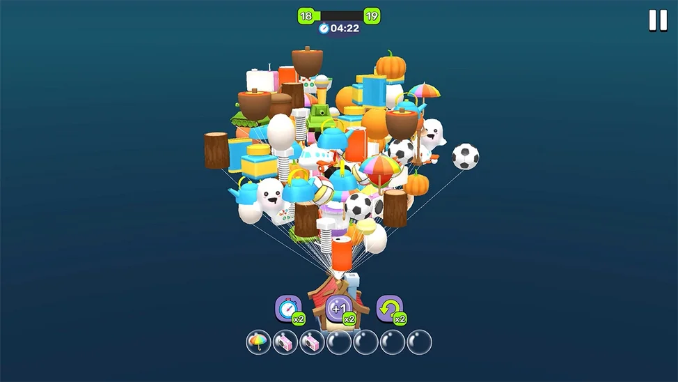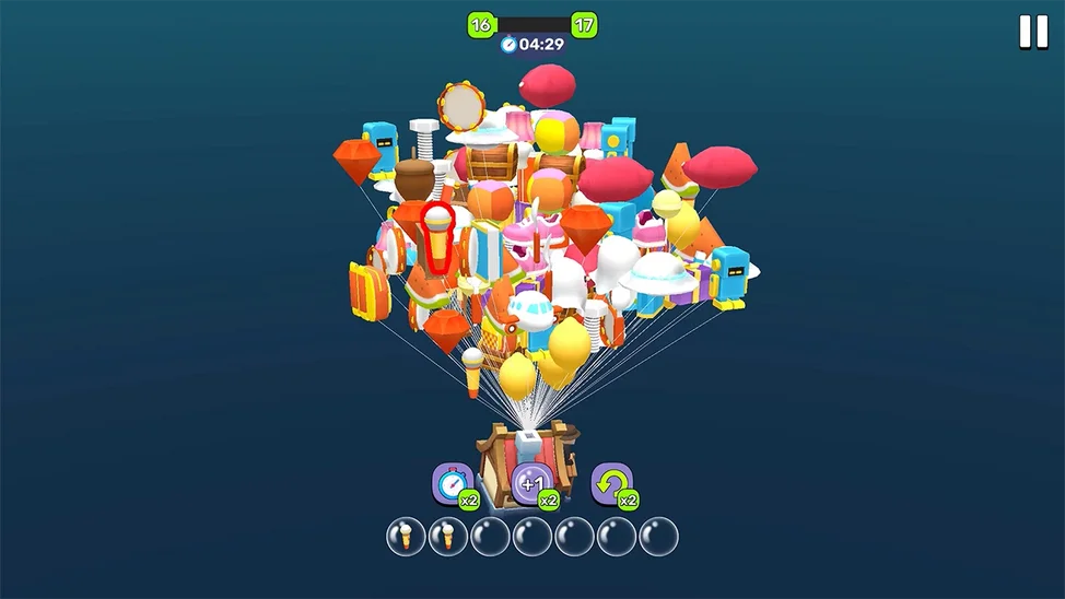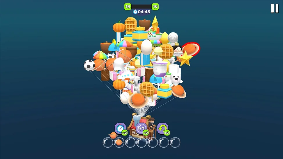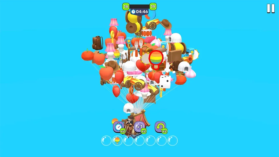 Ваша задача — помочь домику, парящему в небе на множестве разноцветных воздушных шаров разной формы, опуститься на землю. Нажимая на шары, вы перемещаете их в ячейки внизу экрана. Соберите три одинаковых предмета-шарика подряд, чтобы они исчезли, освободив место и приблизив домик к земле. На крыше сидит дедушка, и когда дом наконец приземлится, он с радостью отпразднует победу! В игре доступно множество уникальных и разнообразных предметов коллекции, открывающихся по мере прохождения уровней. Используйте бустеры, чтобы облегчить прохождение: отключите таймер, добавьте дополнительную ячейку (вместо 7 — 8), или отмените последний ход, если ошиблись. Каждый матч — шаг ближе к земле. Сможете ли вы освободить дом от всех шаров и сделать дедушку счастливым? Эта игра подарит море удовольствия, тренирует внимание и порадует красочной графикой и атмосферой.